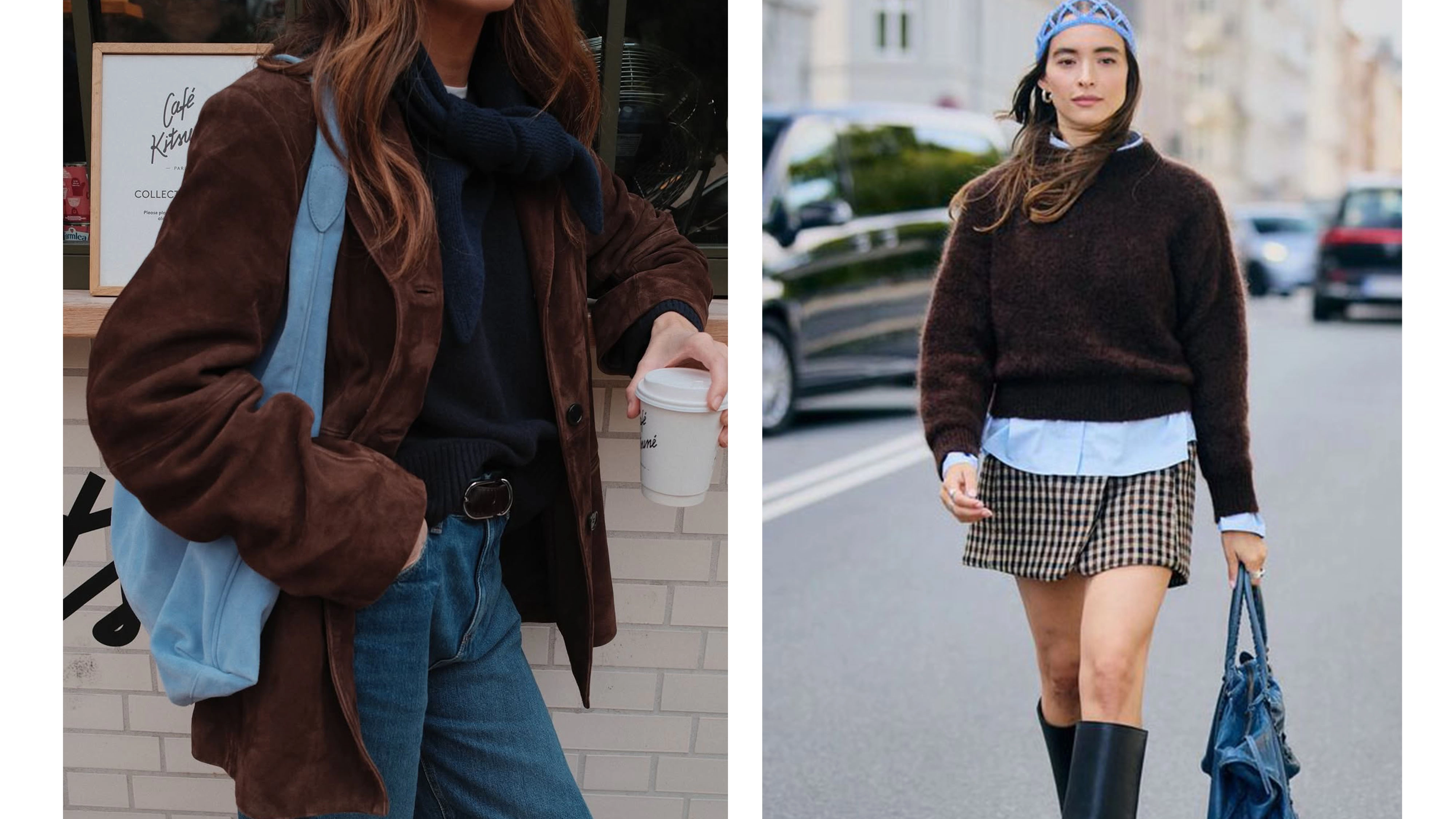 Keep scrolling below to get inspired by how the fashion set are wearing the color combination, then shop our favorite brown and blue pieces to style together.
