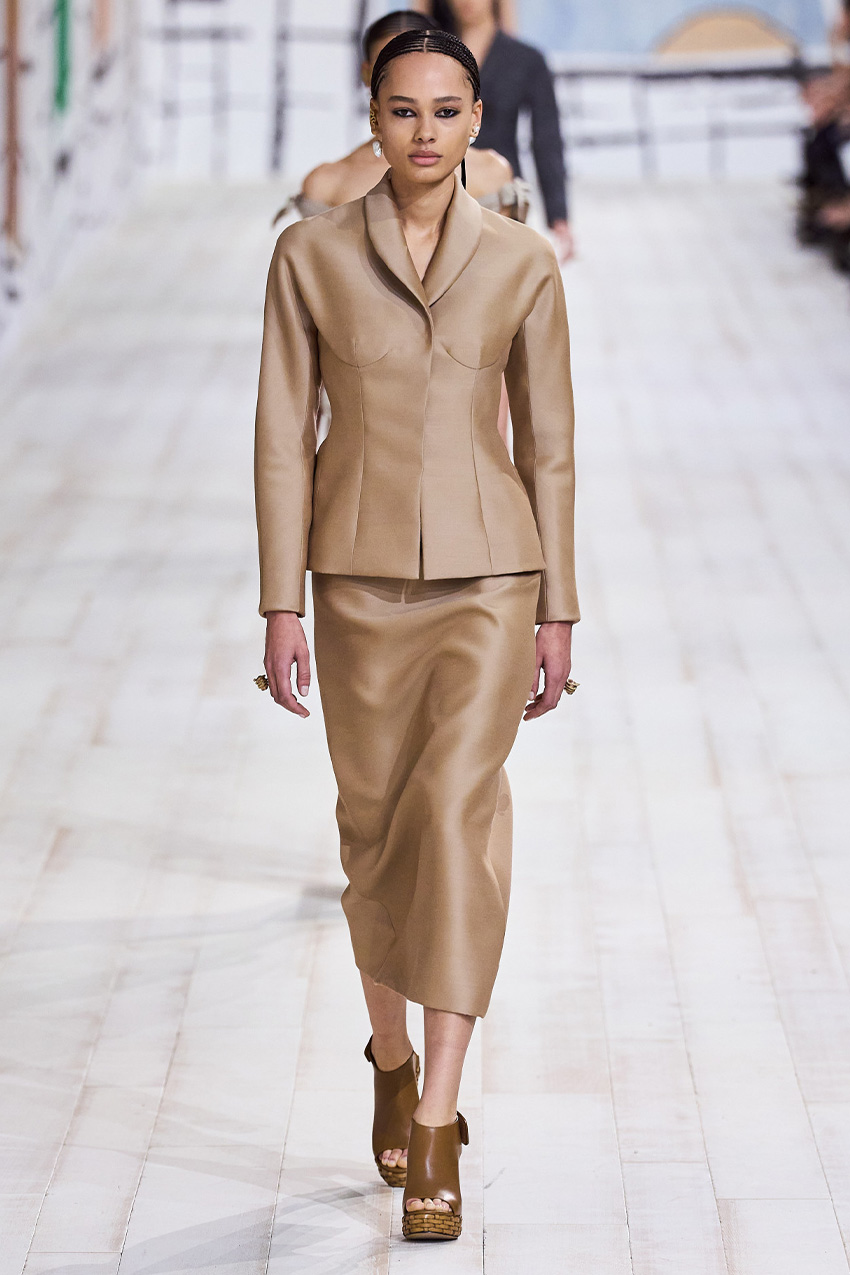 Style notes: Grazia Chiuri used texture to bring archival silhouettes to life, so be sure to play with various textiles in your look.