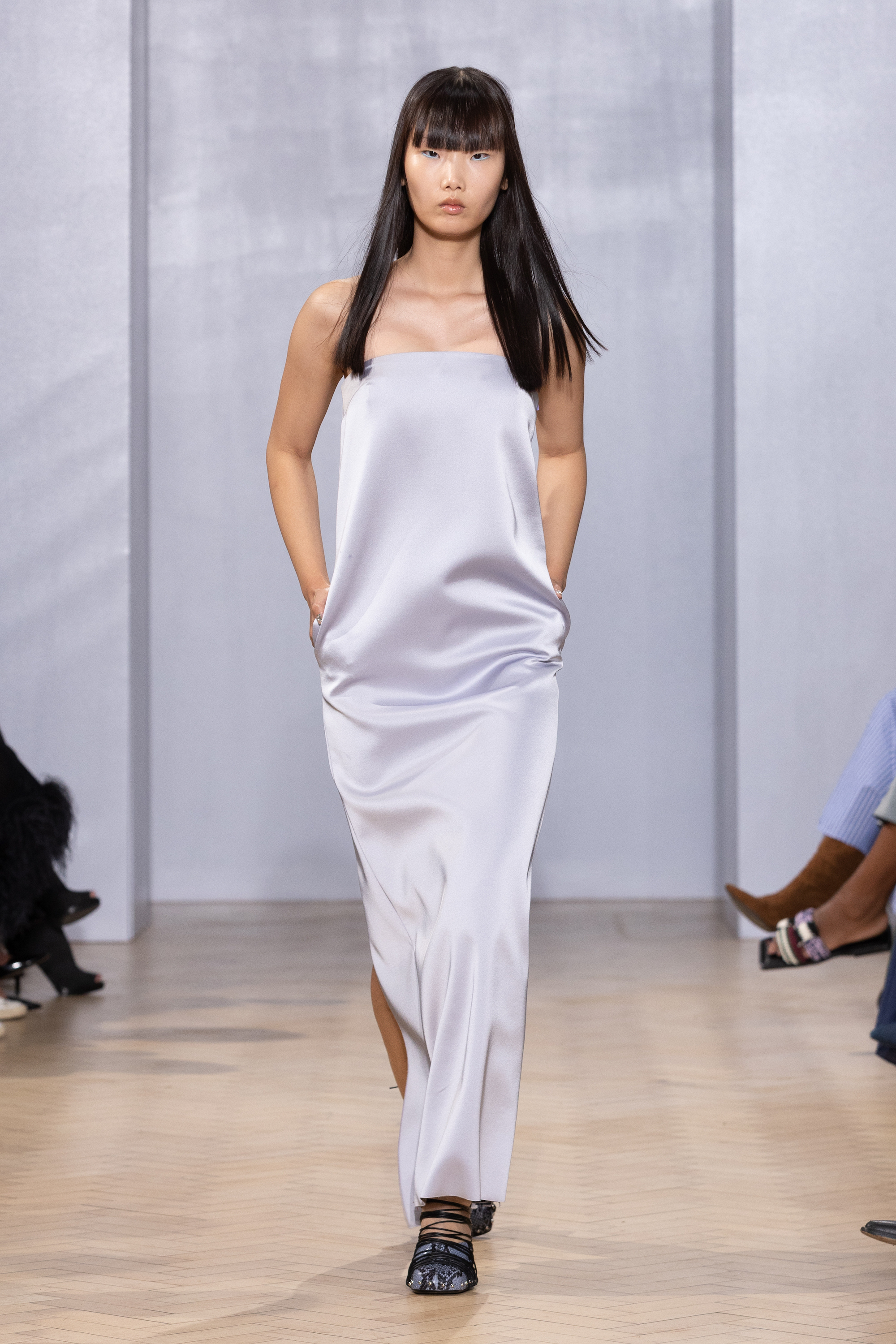 "We're in the full swing of the '90s fashion resurgence with many cool, minimal pieces recirculating that you could have found in the closet of the late Carolyn Bessette-Kennedy. On the S/S 23 runways, this momentum continued but the standout piece to know is the tube dress—designed in midi and maxi lengths and cut with slightly loose silhouettes. Designers including The Row, Khaite, and Prada perfected the piece, each opting for sleek satin for the ultimate take on understated elegance."—Kristen Nichols, senior editor