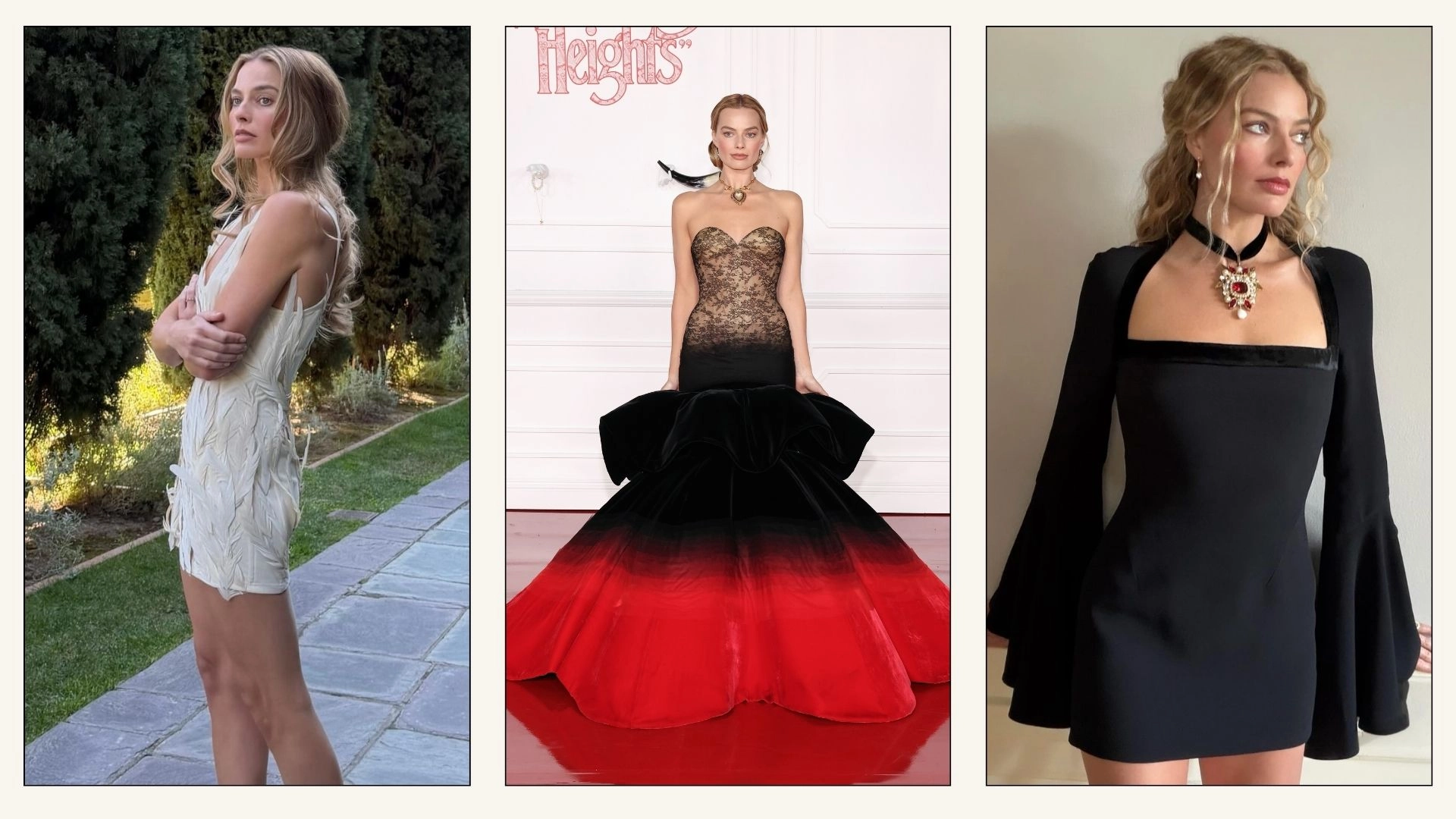 Unsurprisingly, the wardrobe is no less dramatic. Working once again with stylist Andrew Mukamal, Robbie has so far unveiled a series of striking looks that echo the film’s central themes of romance, obsession, love and loss. True to form, each outfit is laced with symbolism, subtle references and thoughtful Easter eggs that reward with closer inspection. As the press tour unfolds, I’ve been decoding every look to uncover the meaning behind each one. Scroll on for the full breakdown.