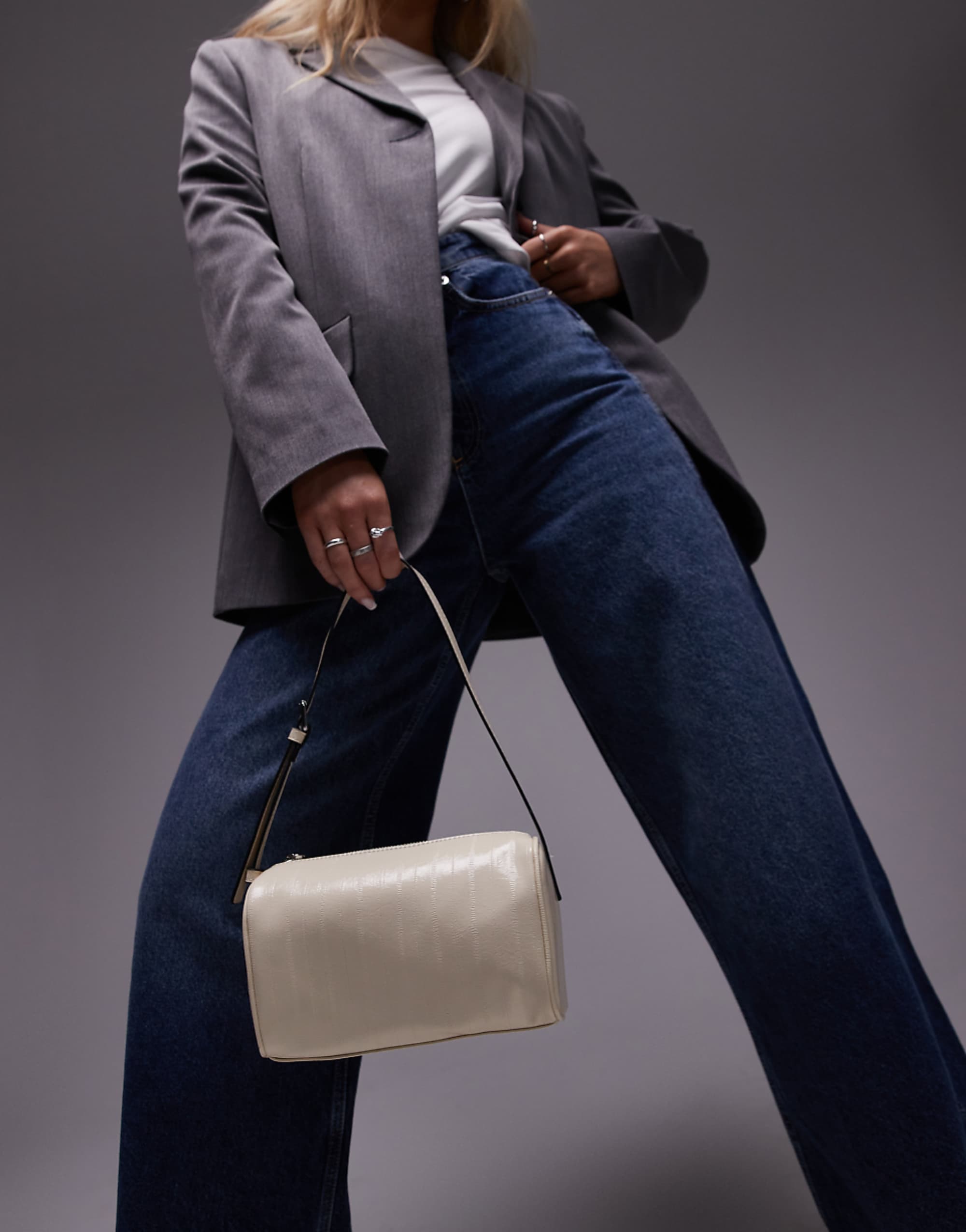 There's something undeniably chic about the unique shape of a barrel bag, with its tubular shape creating a point of difference from your typical shoulder bag. It's not too slouchy or relaxed, and the more structured features make it feel all the more polished, even when paired with a simple tank and jeans.