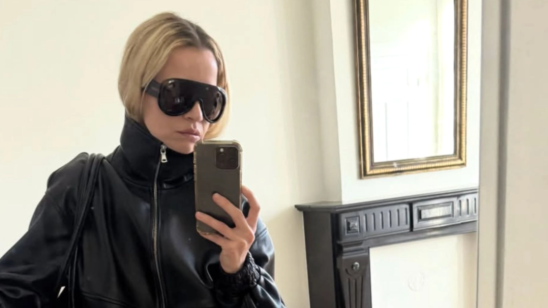 This leather-heavy look says "don't mess with me," but you still get to wear comfy pants that look elevated thanks to the satin texture. It's an all-around win. Here's the exact jacket from this look in case you're interested.