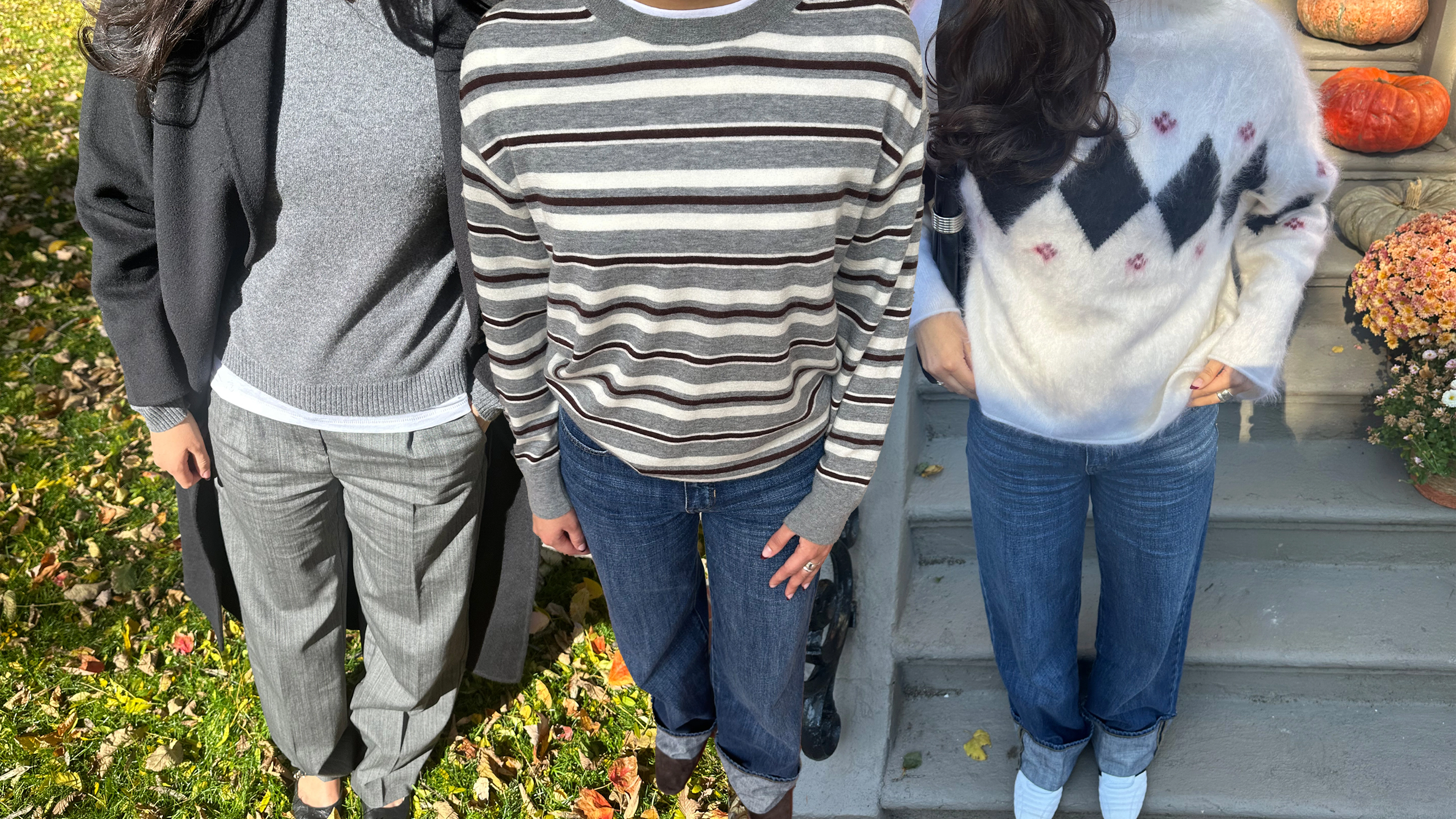 I reached for the wide-leg jeans once again, and this time, I wore them with a different sweater trend I've spotted on the fashion set: a striped crewneck. The Featherweight Cashmere Relaxed Crewneck Sweater is soft and lightweight, and ever since I spotted NYC It girls wearing white tees under their cashmere crewnecks, I've done the same. Layering adds another dimension to the casual nature of the look without making it seem overthought. The J.Crew Vintage Jersey Classic-Fit Crewneck T-Shirt is a quality basic perfect for fall and winter layering.