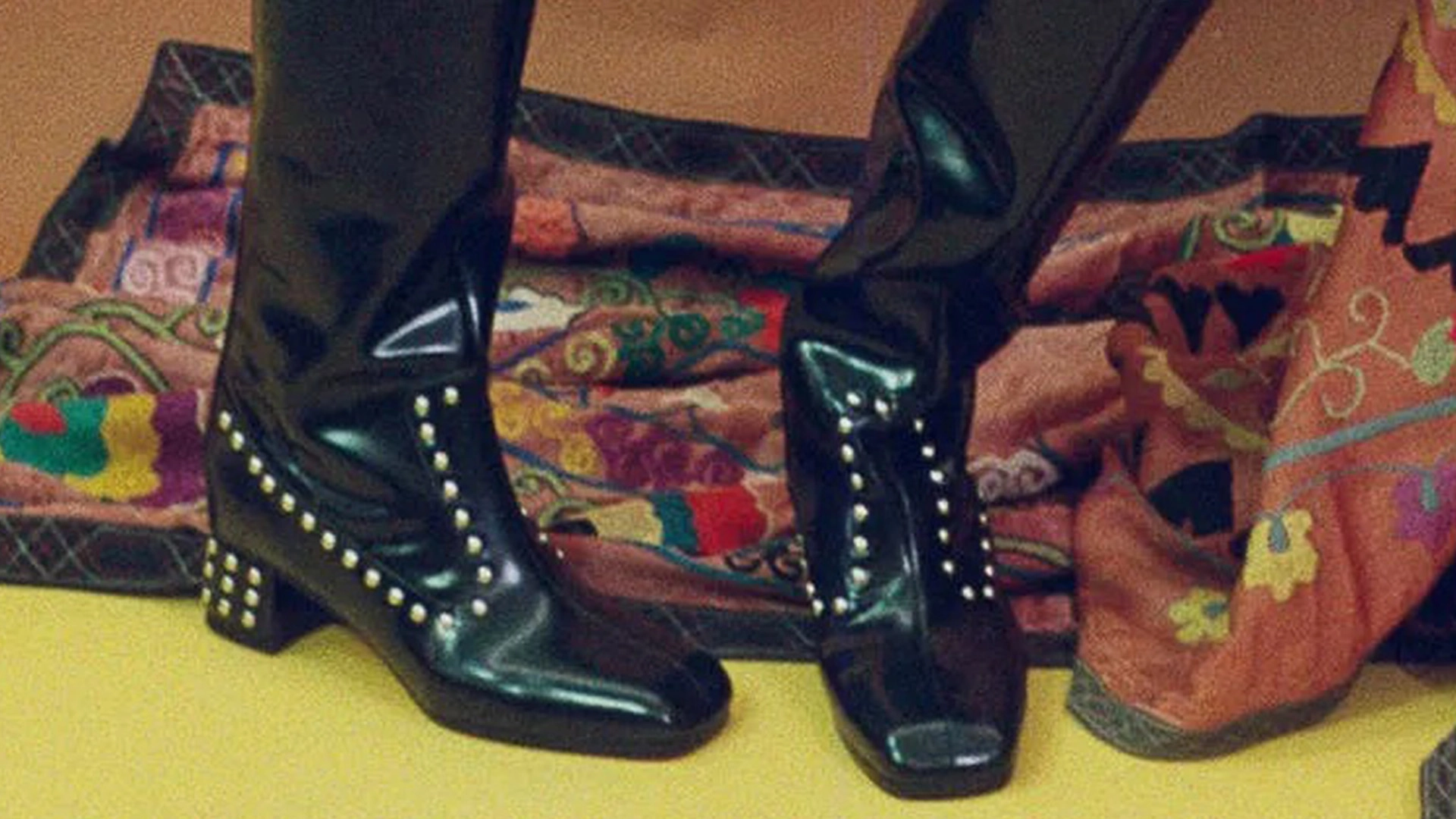 The Maraym Nassir Zadeh Kiki boot is a knee-high boot with studs, a small block heel, and a square toe. It's been a signature style of the beloved downtown New York brand for some time. Although, it's also impossible to find. Kiki boots sell out. I would know because when I was trying to score my first pair, it took me months until I finally found one in patent white leather on an obscure deep corner of the internet—it was the last one in my size.