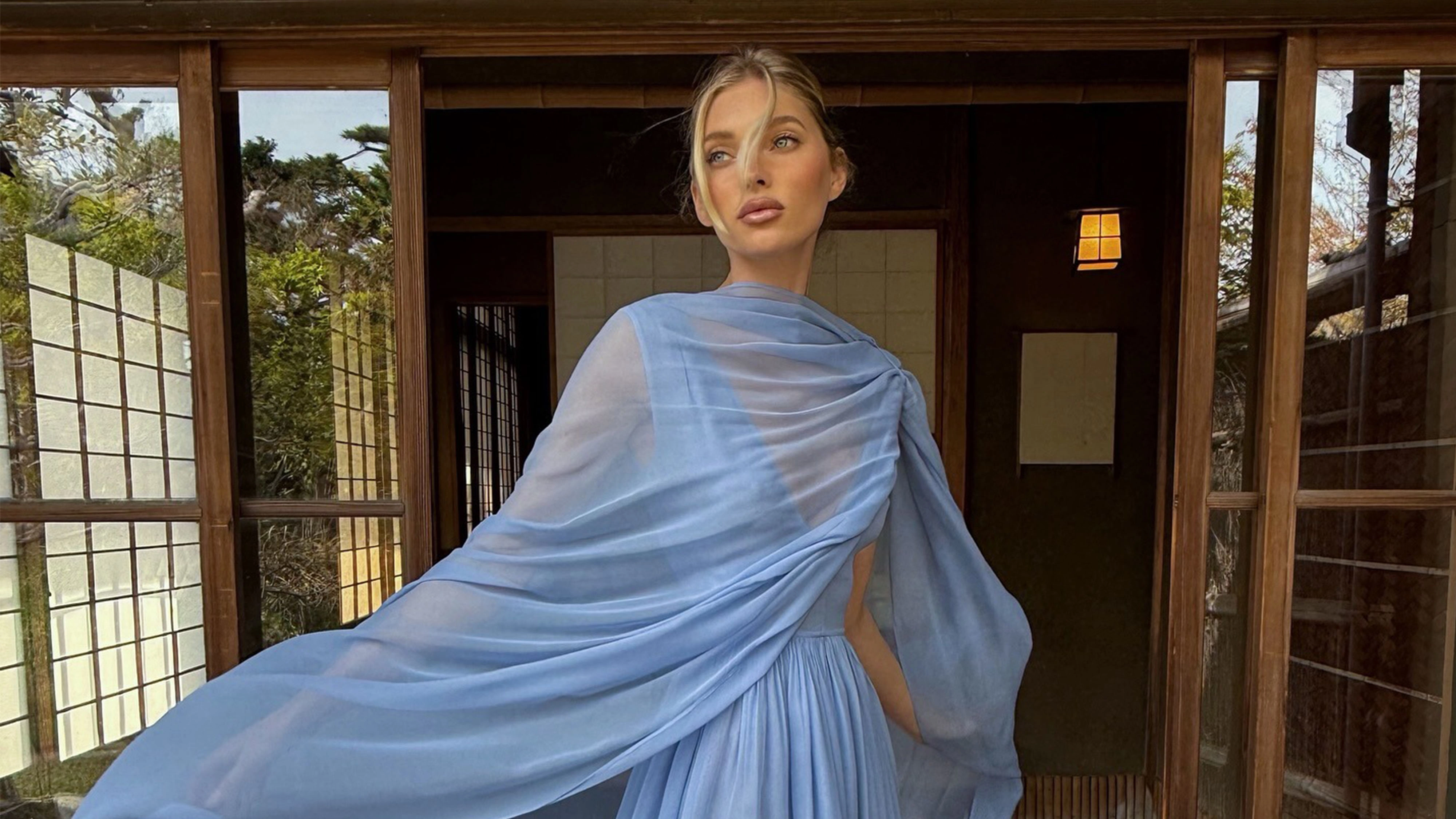 The big trend taking over for wedding guest season? Dresses styled with cape details. The look has been spotted on celebrities including Rosie Huntington-Whiteley, Elsa Hosk, and Alexandra Malena Saint Mleux. Their looks feature pastel-hued dresses, topped off with sheer chiffon capes that add a regal element to their outfits. The looks are perfect for event dressing, including weddings on the itinerary.