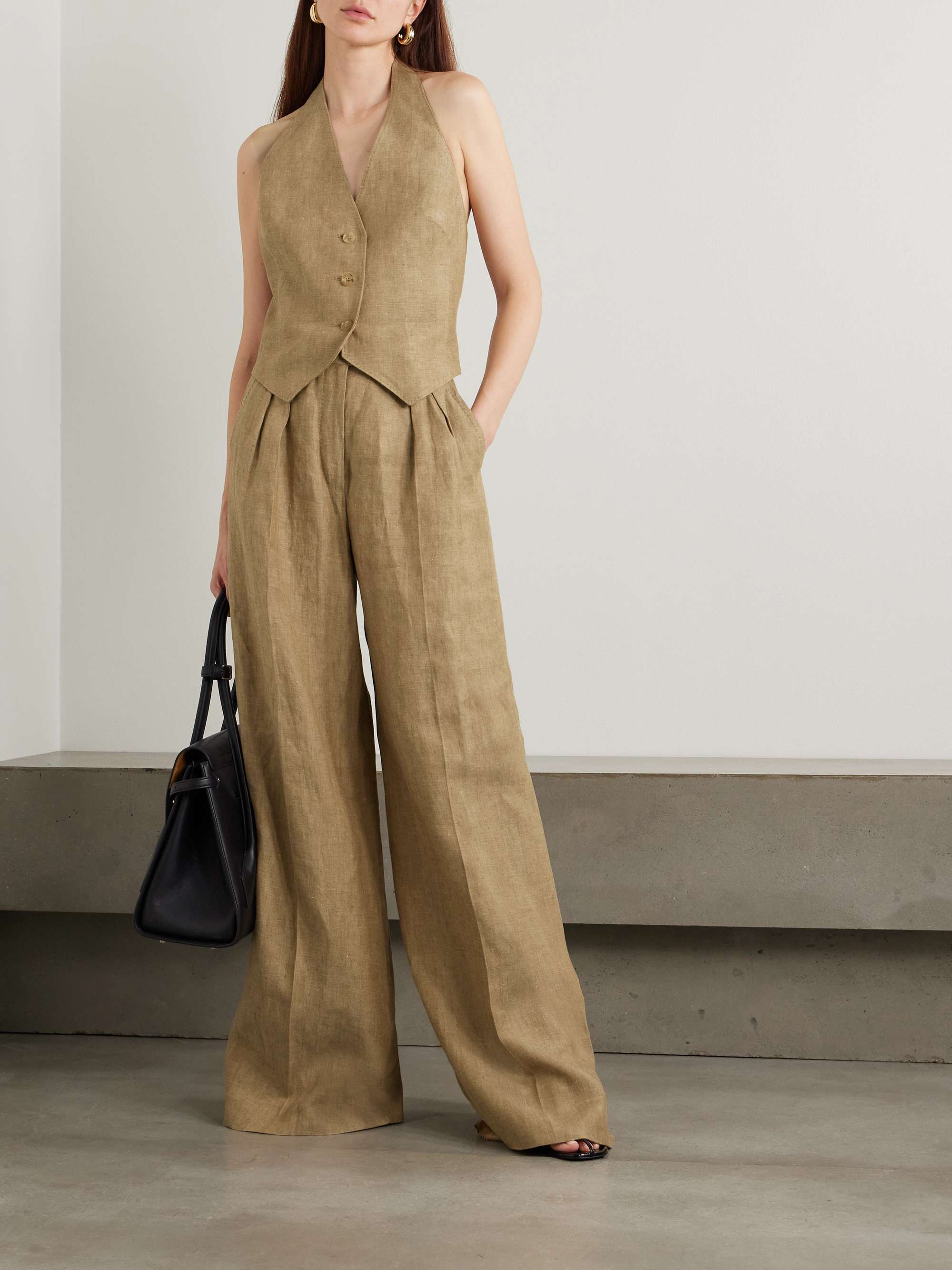 Style Notes: Vests are the classic summer tops. They're wardrobe staples, whether you're constantly wearing a ribbed black tank with all of your trousers and shorts or like to give your top the spotlight, opting for unique silhouettes and fabrics. They're my go-tos for staying cool and equally suitable when an outfit calls for a sleeker top. As Lena shows, a vest is perfect on its own or paired under long-sleeve cotton and linen tops